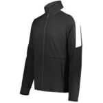 The Youth Crosstown Jacket from Holloway is perfect for young athletes who want to stay comfortable and dry. Made with Dry-Excel™ 100% polyester double-knit and Dry-Excel 100% polyester mesh inserts, this jacket wicks moisture away from the body to keep them cool and dry. With a front zipper, set-in sleeves, and front zippered pockets, it provides convenient and comfortable wear, while the woven label adds a touch of style. The open bottom design adds to the breathability of the jacket, making it ideal for outdoor activities.